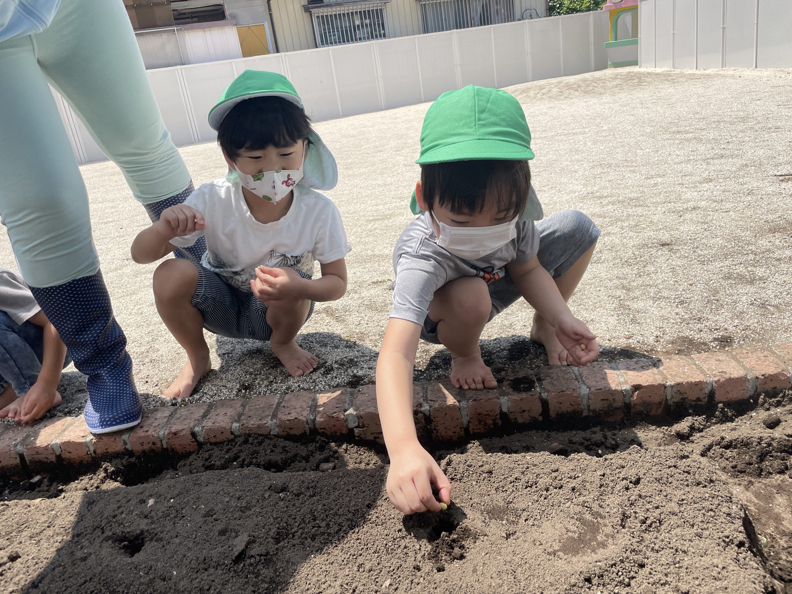 タネを入れたら土をかけるよ!