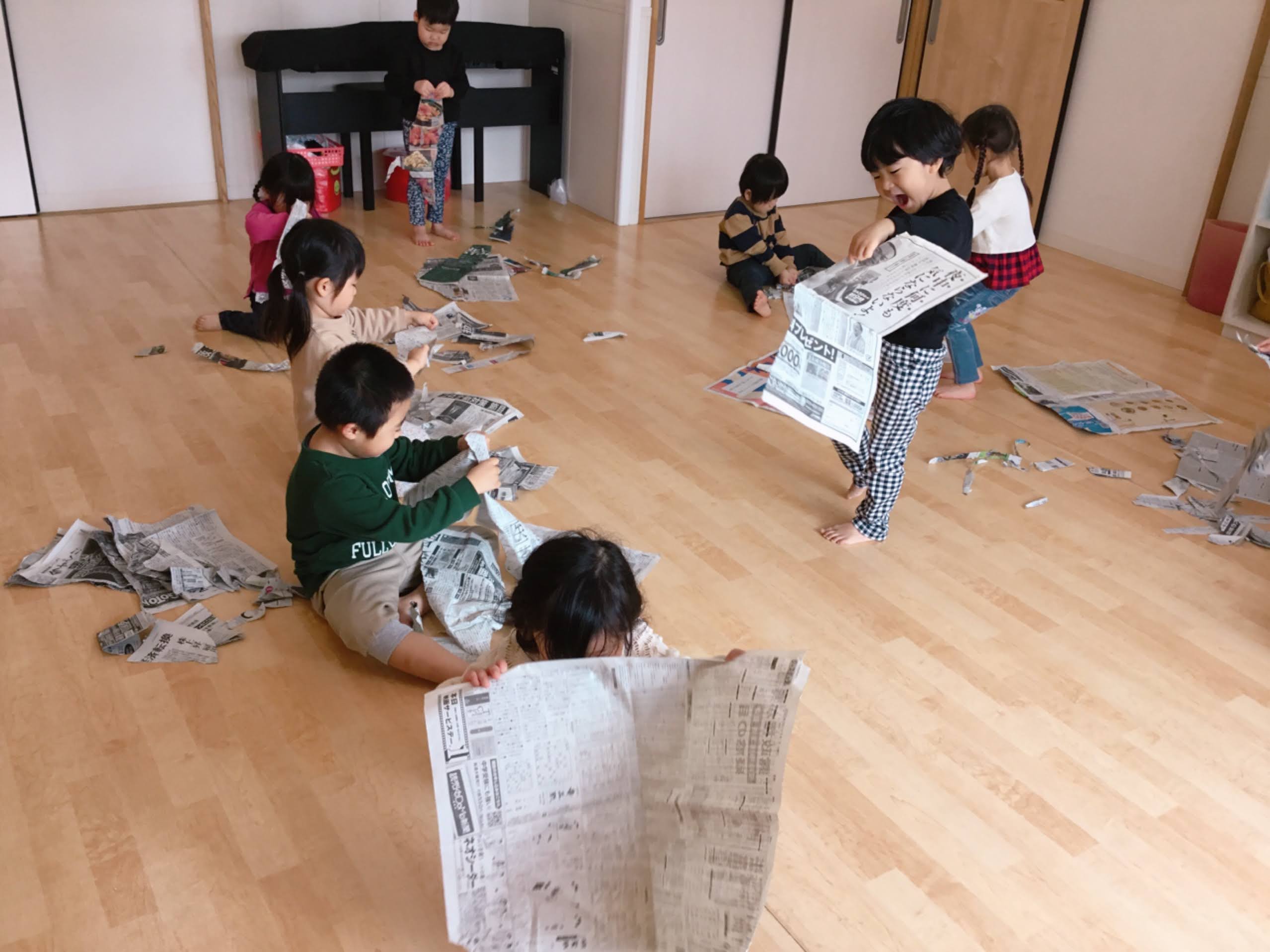 まずはいつもの新聞遊び