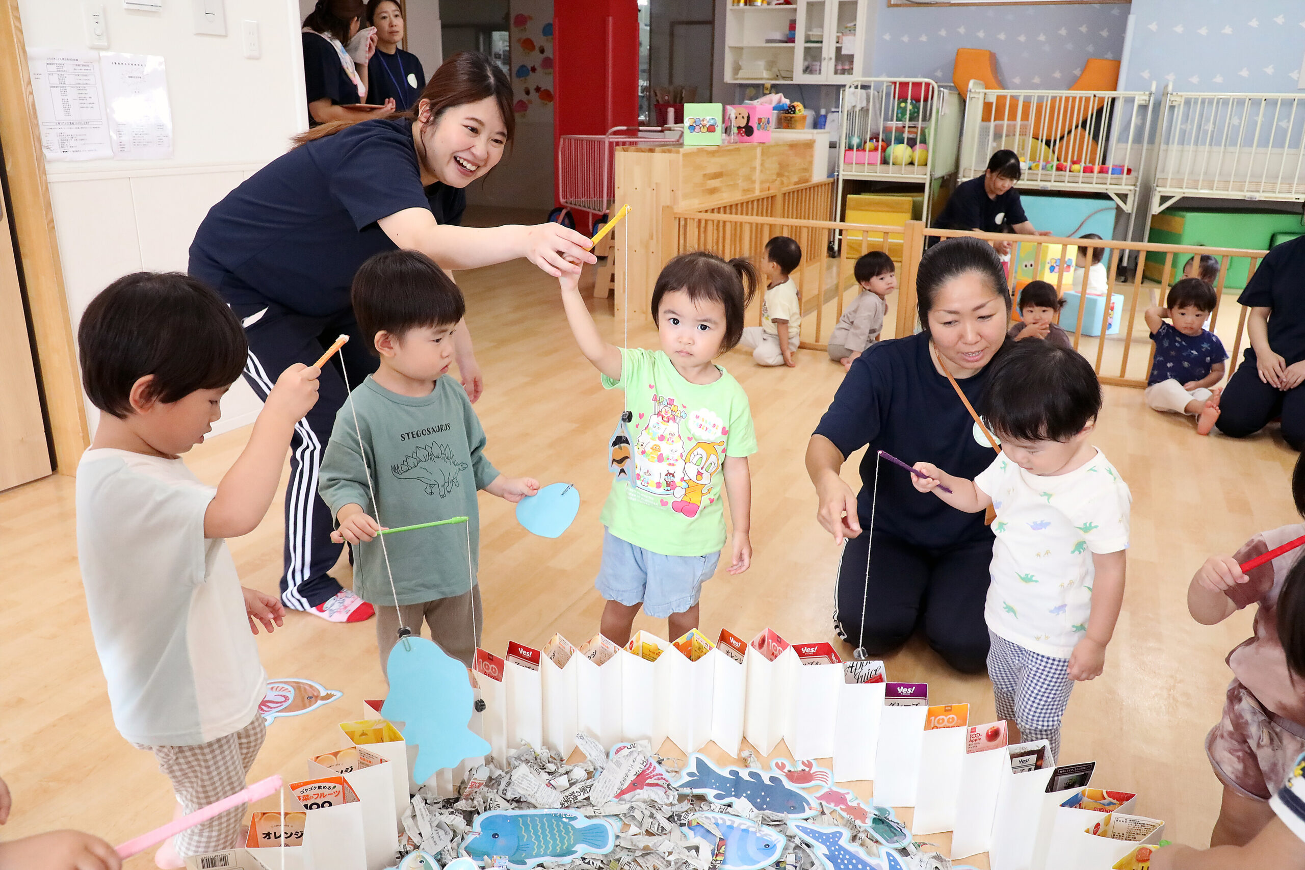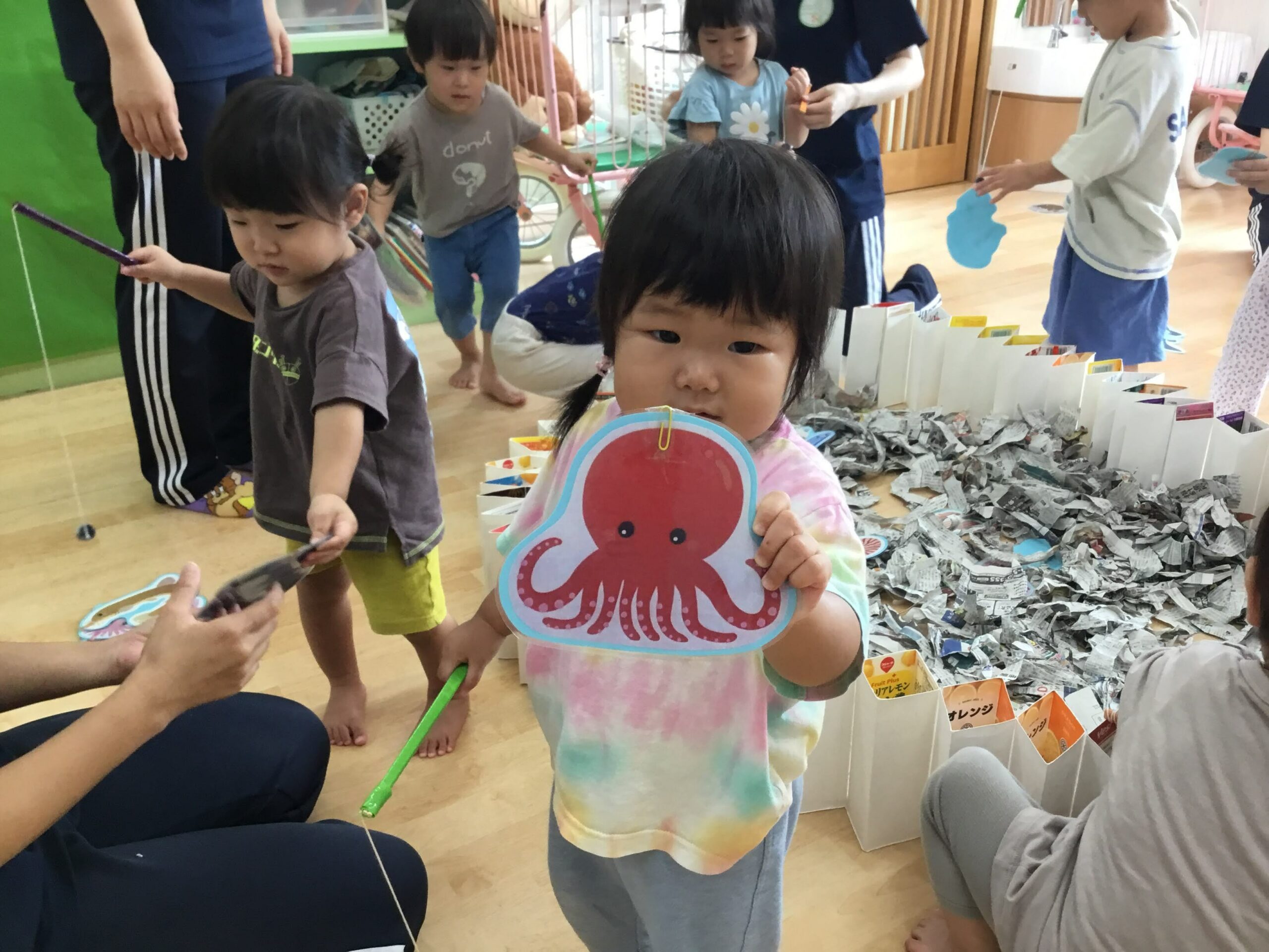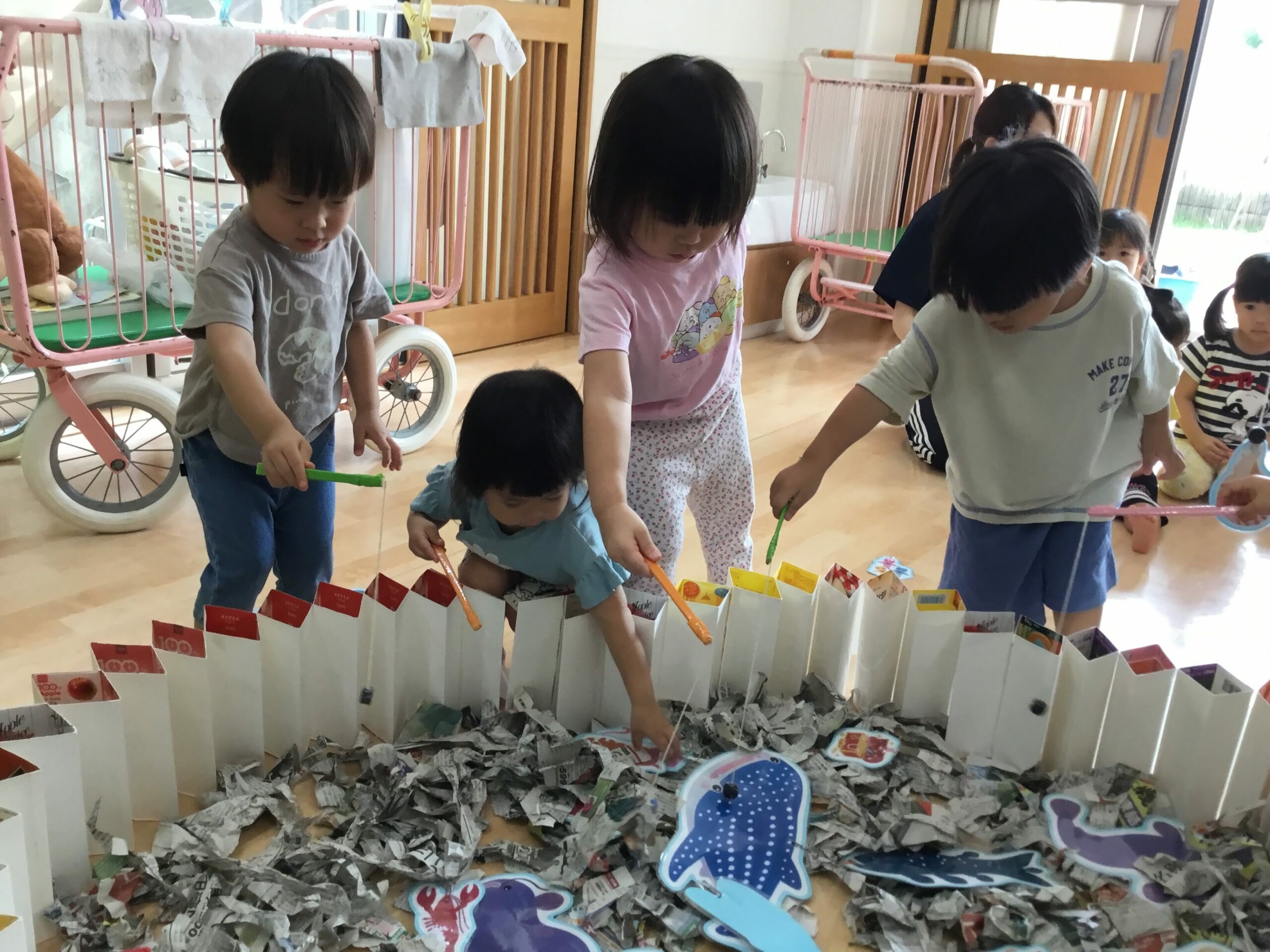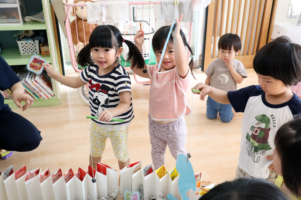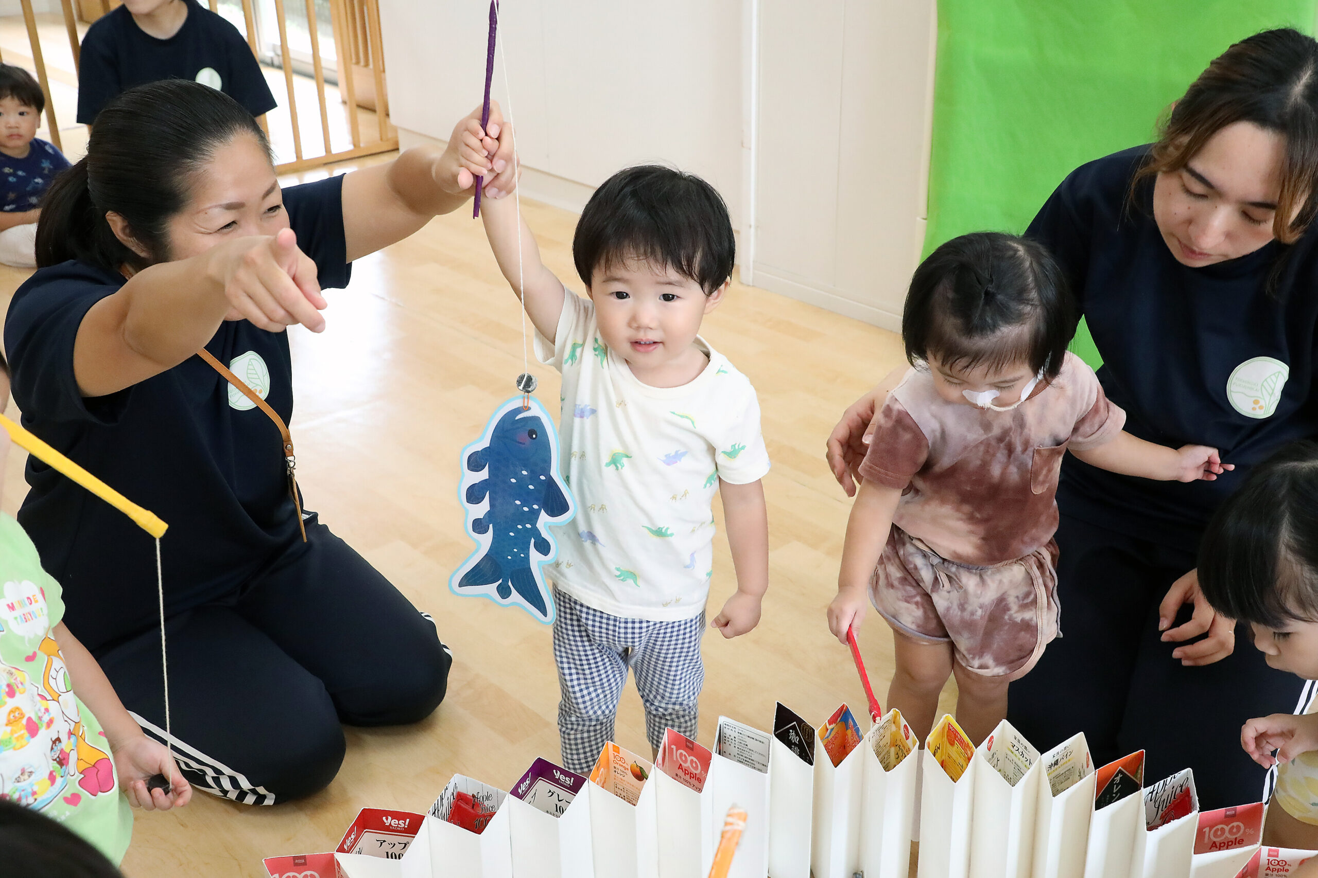あかぐみ・ももぐみさんは魚釣りへ。 0歳児さんはツムツム。
