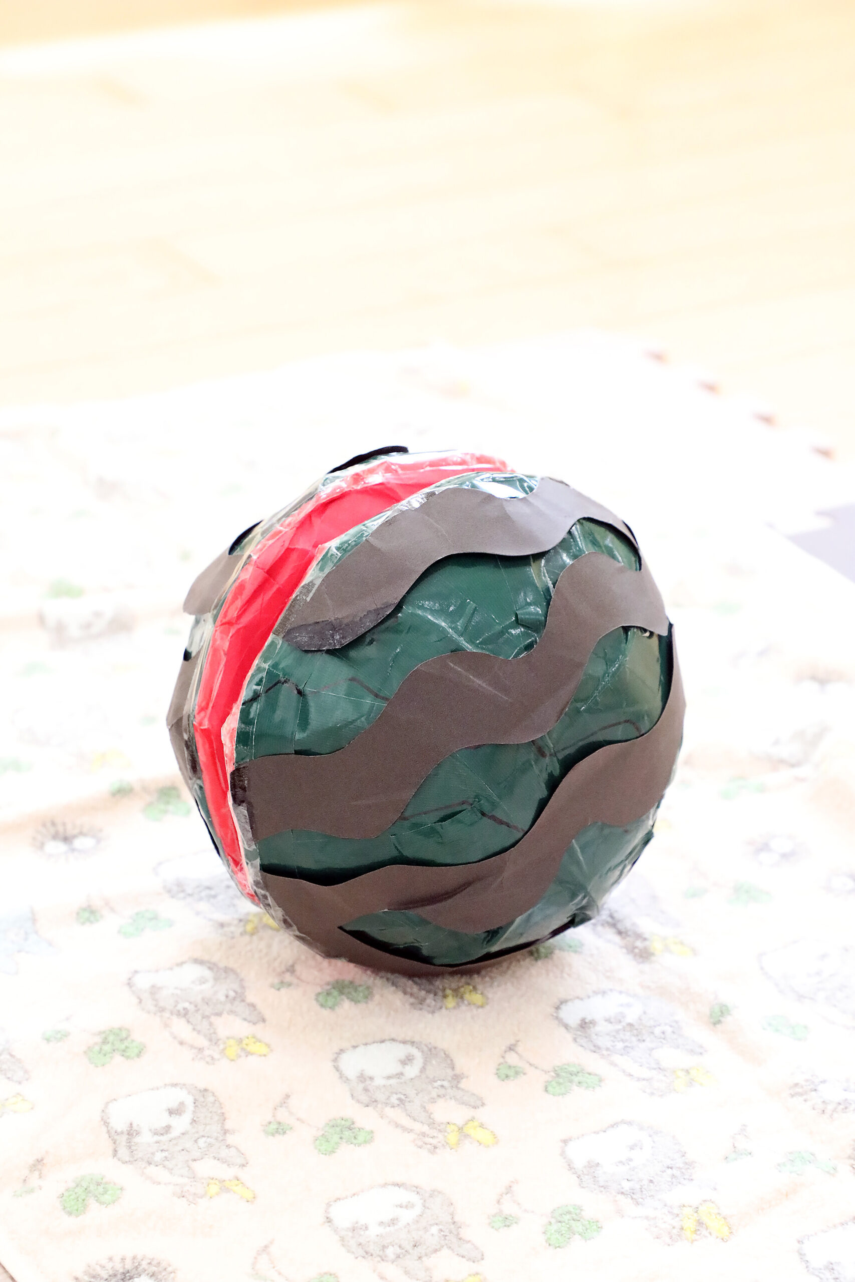 でも、スイカ割りをやってみたい気持ちがフツフツと湧いてきて、、、先生たちが準備してくれました。そこで出てきたスイカが、、、先生お手製のスイカ🍉