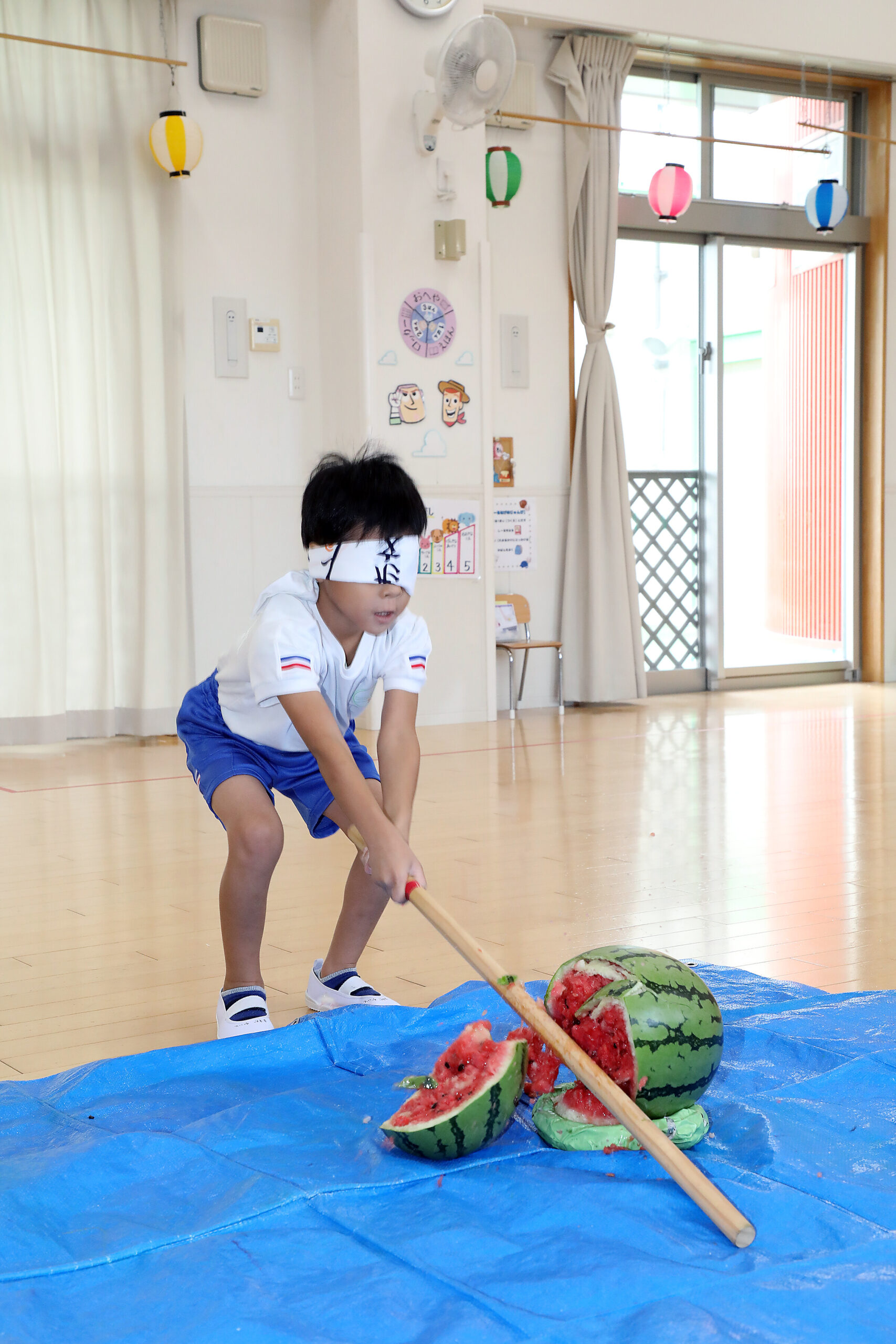 あおぐみさんは本物のスイカでスイカ割りをしました😁(スイカは2個用意したよ)