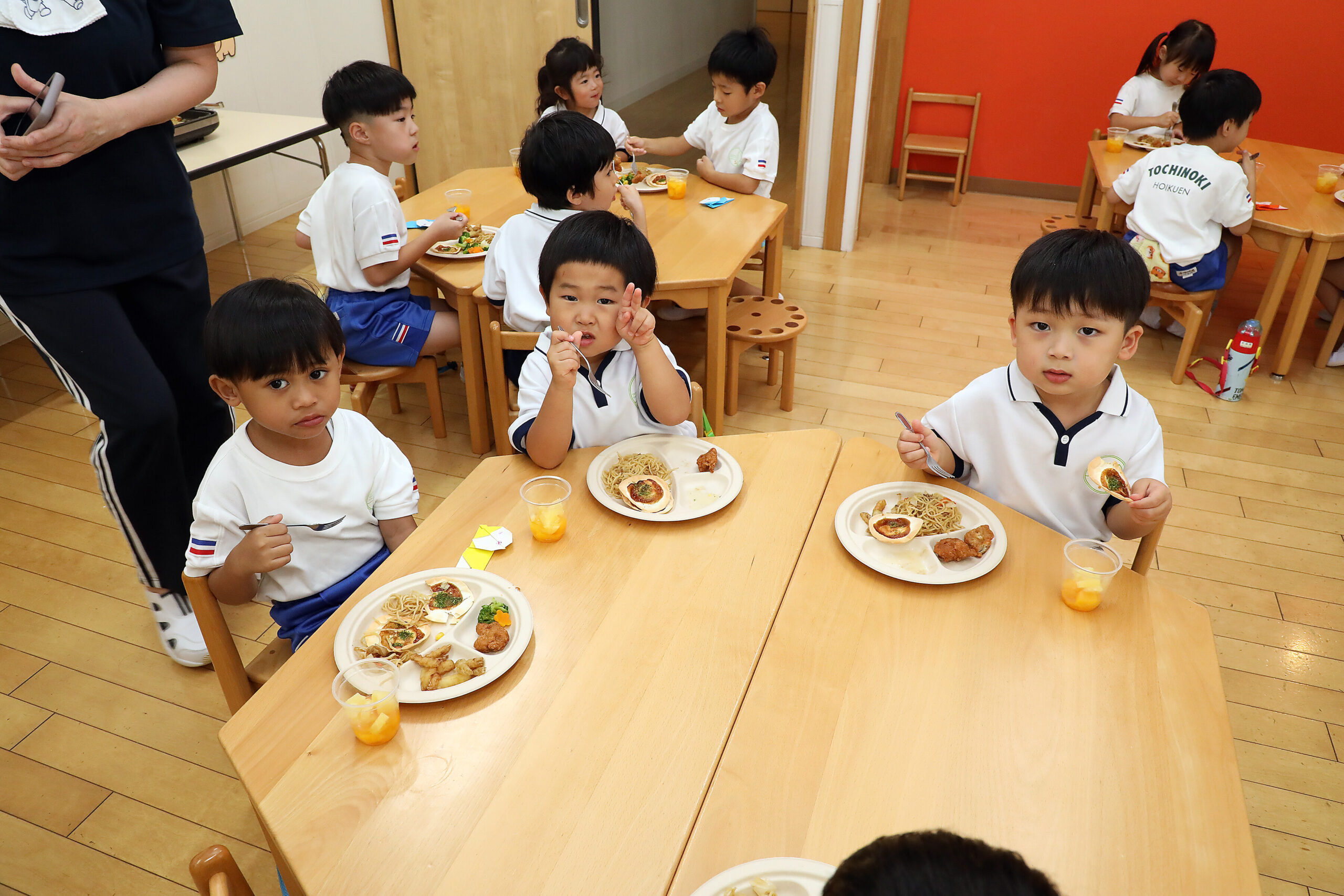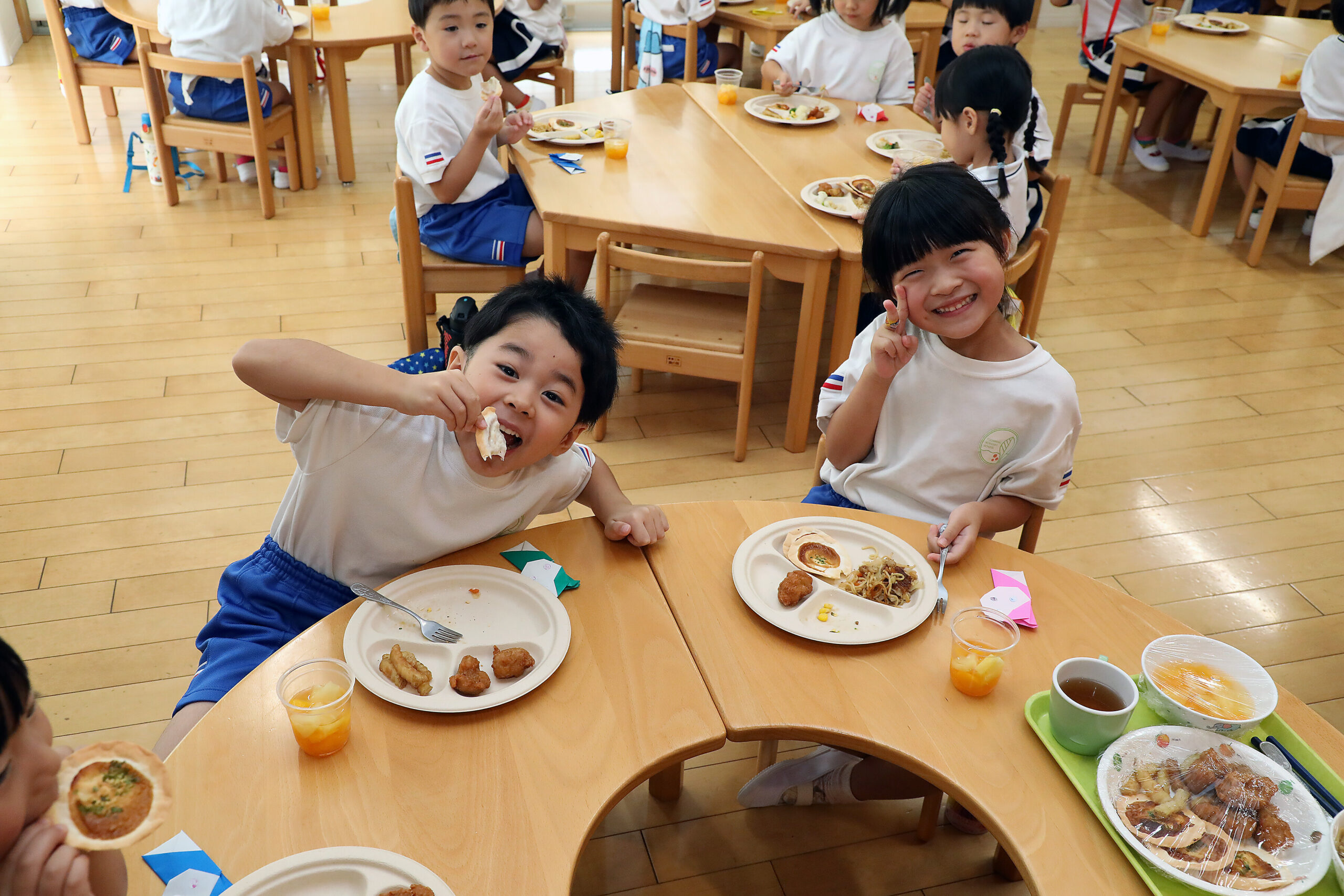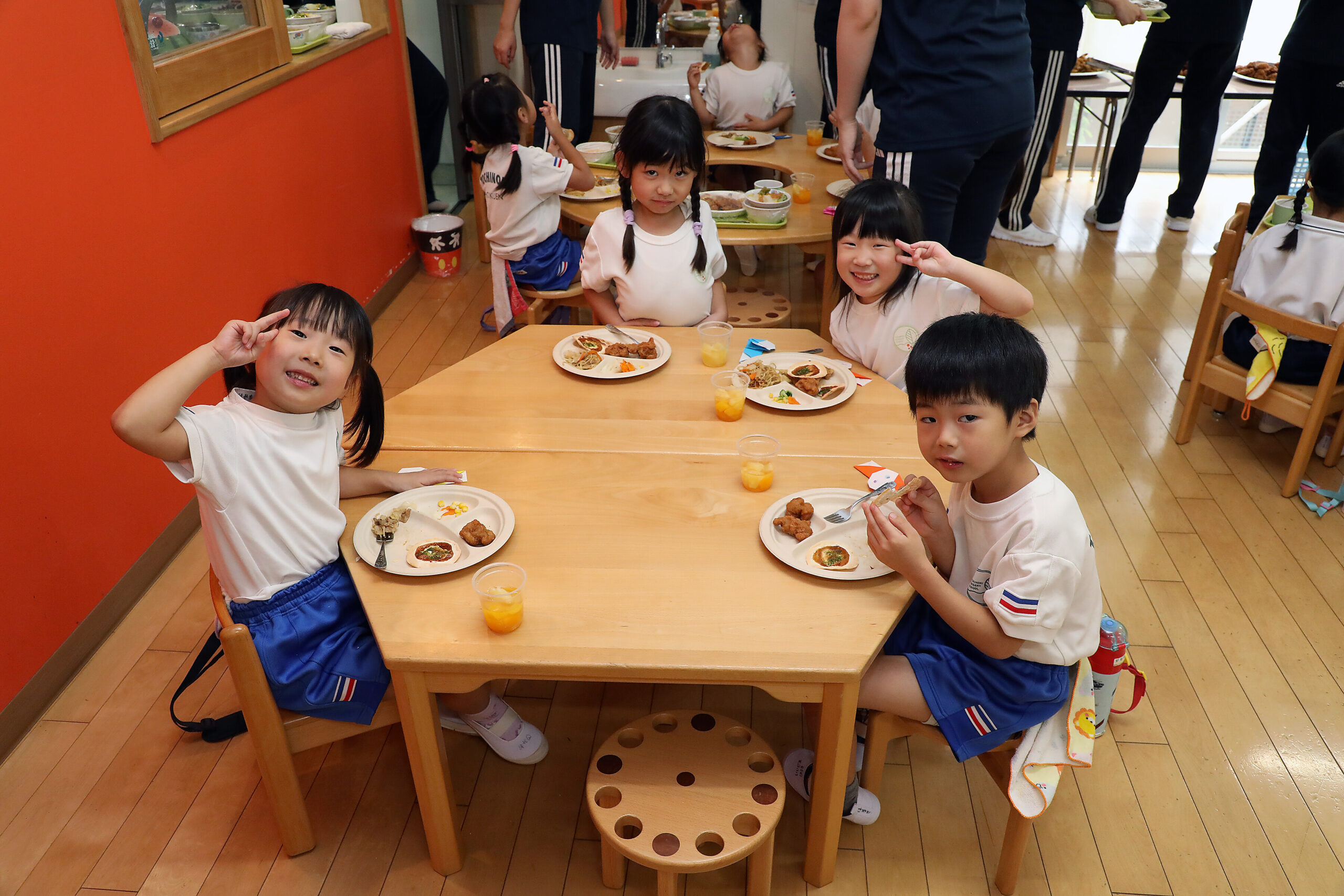 たくさん楽しんだ後は給食。本日はいつもと違い特別給食となっています✨✨