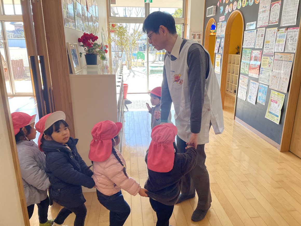 2月2日(月)に埼玉県福祉部こども支援課の山崎課長が保育士体験に来てくれました。