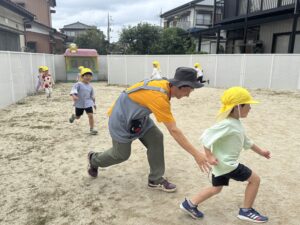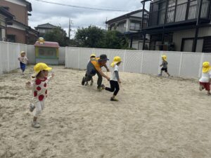 今日は、沢山園庭で鬼ごっこや自由遊び!みんな必死に逃げてました!パパ先生も本気モード🤭