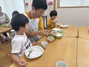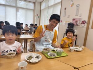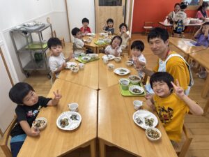そしておまちかねのお給食!沢山遊んで、みんなお腹がぺこぺこ!いつも以上にたくさん食べました♪